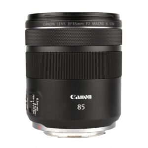 Canon EOS R8 + RF 85mm F2 MACRO IS STM – widok frontowy w kolorze czarnym