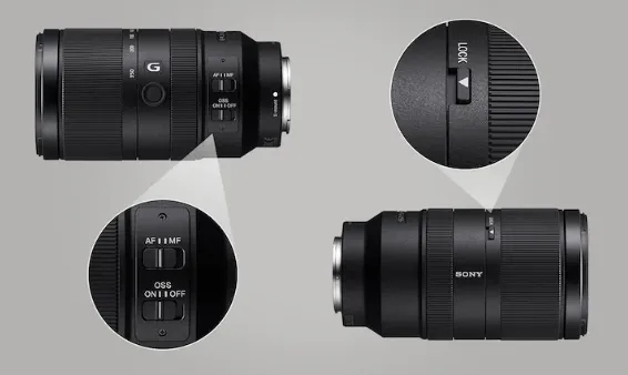 Przełącznik stabilizatora obrazu Optical SteadyShot, programowalny przycisk blokady ostrości oraz przycisk blokady zoomu zwiększają wygodę korzystania z obiektywu, który dodatkowo jest odporny na wilgoć i kurz