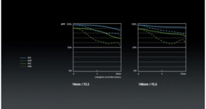 Wykres MTF W przypadku kompensacji zniekształceń obiektywu oś pozioma MTF oznacza odległość od środka korygowanego obrazu.