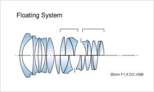 Dostosowuje odległości między grupami soczewek podczas ustawiania ostrości, redukując ilość koniecznych ruchów soczewek.