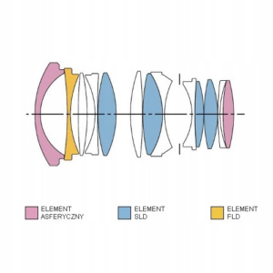 Aż 7 z 13 soczewek jest wykonanych ze specjalnych szkieł SLD, FLD oraz w kształcie asferycznym.